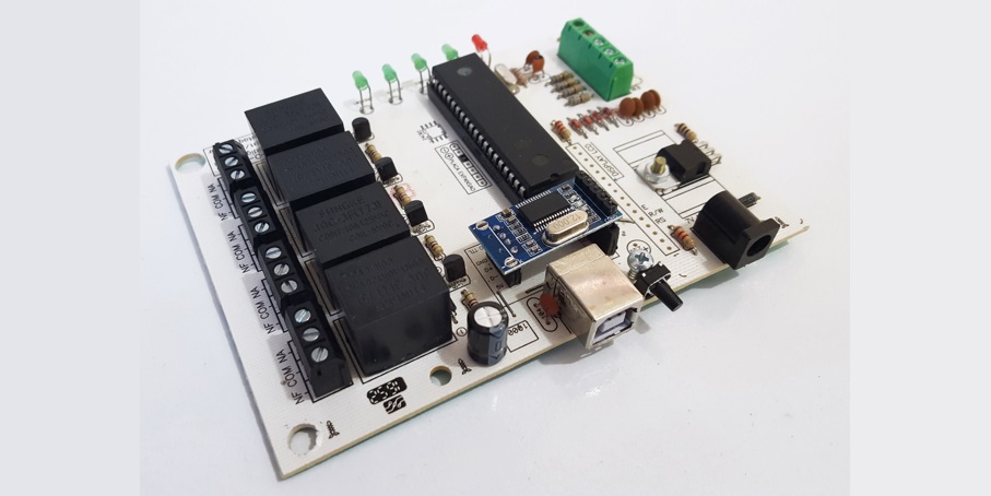 Placa para automação nas versoes 2, 4 e 8 relés. Permite controlar cargas de alta potência em horários definidos pelo computador. Além disso você pode utilizar o software USB 4 Relay Manager para criar sequencias de processos de automação.