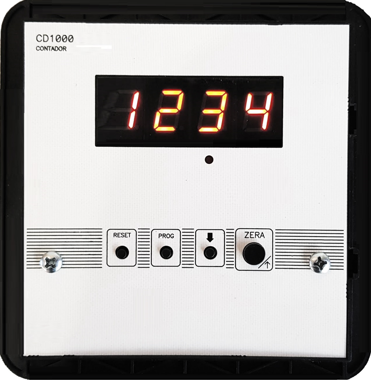 Contagem voltas ou metros (Padrão)Contagem voltas ou metros (Indutivo)Contagem de Litros (Fluxo)Contagem de Itens (Sensor Infra)CD1000 (Este modelo): Não Possui Relé Interno - Não possui Alarme Embutido - Dimensões: L:10,5cm, x A:10,5cm x P:4cm - Sobrepor;