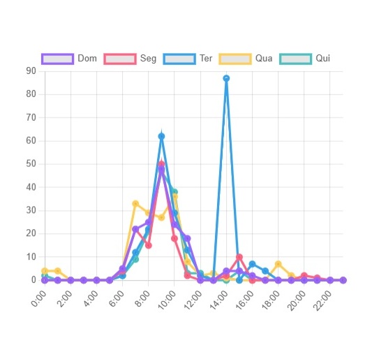Gráfico 2: Comparativos dos dias da semana, com pico entre 8h a 11hs