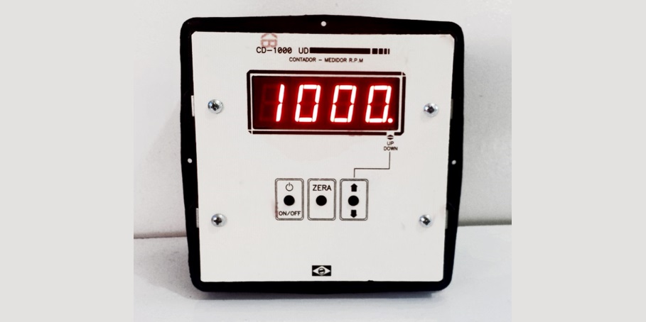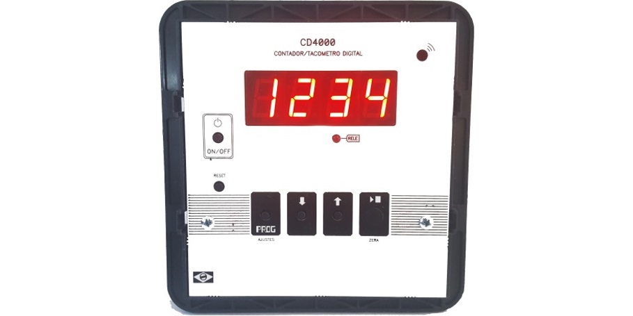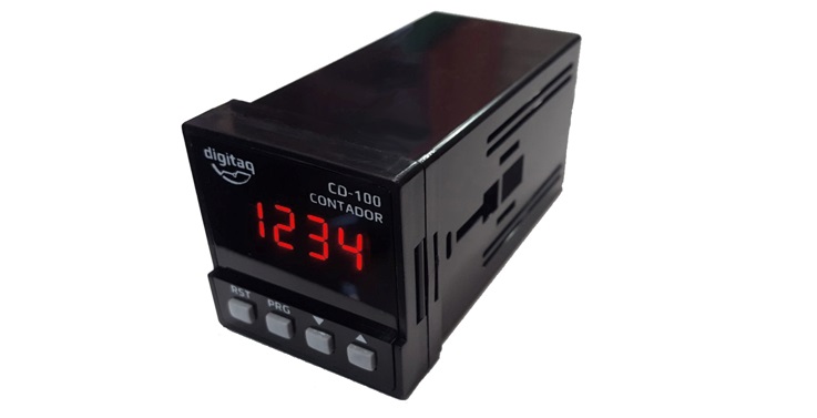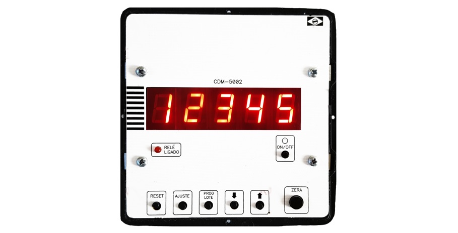 Contador Digital de pulsos com 5 dígitos. Possui relé determinador que pode desligar a carga na contagem programada. Indicador para contar pulsos, centímetros, metros e litros. Possui temporizador de acionamento.