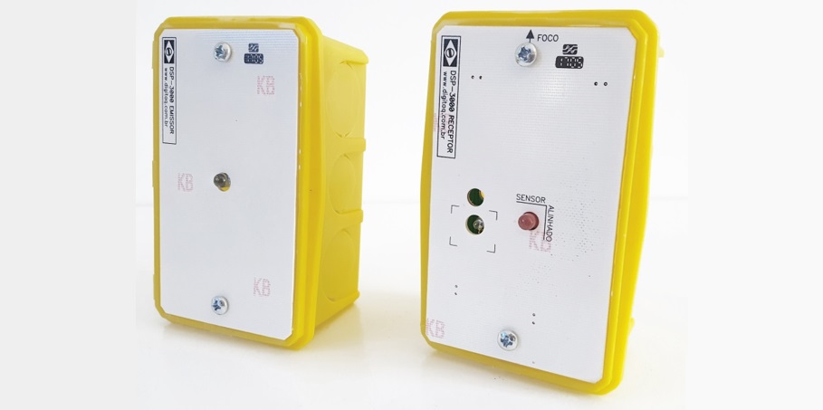 Barreira Infravermelha para contagem de caixas, sacos, peças, objetos, pessoas, veículos com alcance máximo de 3 a 4 metros. Necessita do contador digital para exibir a contagem.